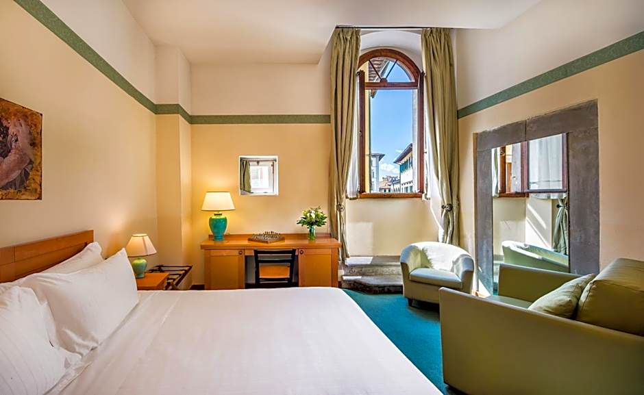 Per chi cerca una vista, alcune opzioni offrono panorami, come una Suite con vista sulla città o una Junior Suite con vista sul canale, aggiungendo un tocco di fascino fiorentino all'itinerario. Gruppi numerosi o famiglie apprezzeranno gli ampi spazi, comprese configurazioni come la Camera con 2 letti singoli per comitive numerose.